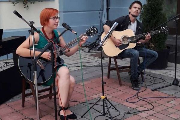У дворику міської ратуші, що на площі Центральна, 1, можна було побачити, як відомий бард Олександр Мадей у вишиванці чекає своєї черги на виступ, щоб виконати дві прем’єри, а тим часом чернівецька американка Юлія Косівчук (поетеса, журналістка, художниця, каратистка, композитор і бард) в яскравому і ефектному українському вбранні фотографувалася із дітьми та гостями заходу. Це якщо говорити про «закулісся». А зі сцени лунала приємна авторська пісня Уляни Пілат. Одну з композицій Уляна та її колега Володимир Білак виконали спільно.