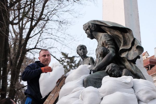 У Чернівцях триває робота із захисту історичних пам’яток. Найстаріший пам’ятник міста обіклали масивними мішками, щоби уникнути руйнувань під час ймовірних обстрілів.