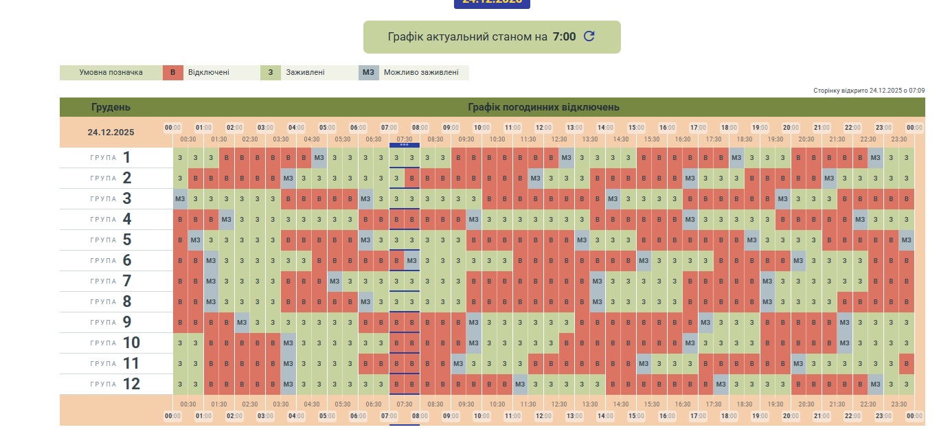 У середу, 24 грудня, у Чернівецькій області вимикатимуть електрику за графіками погодинних відключень.