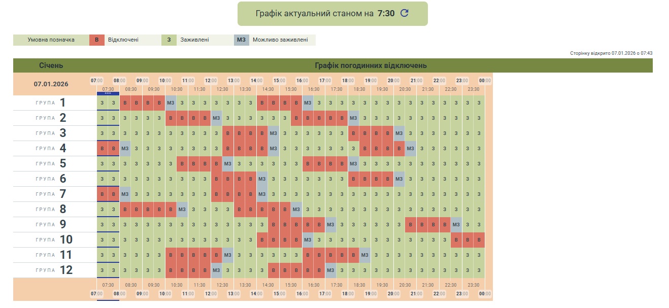 У середу, 7 січня, у Чернівецькій області вимикатимуть електрику за графіками погодинних відключень.