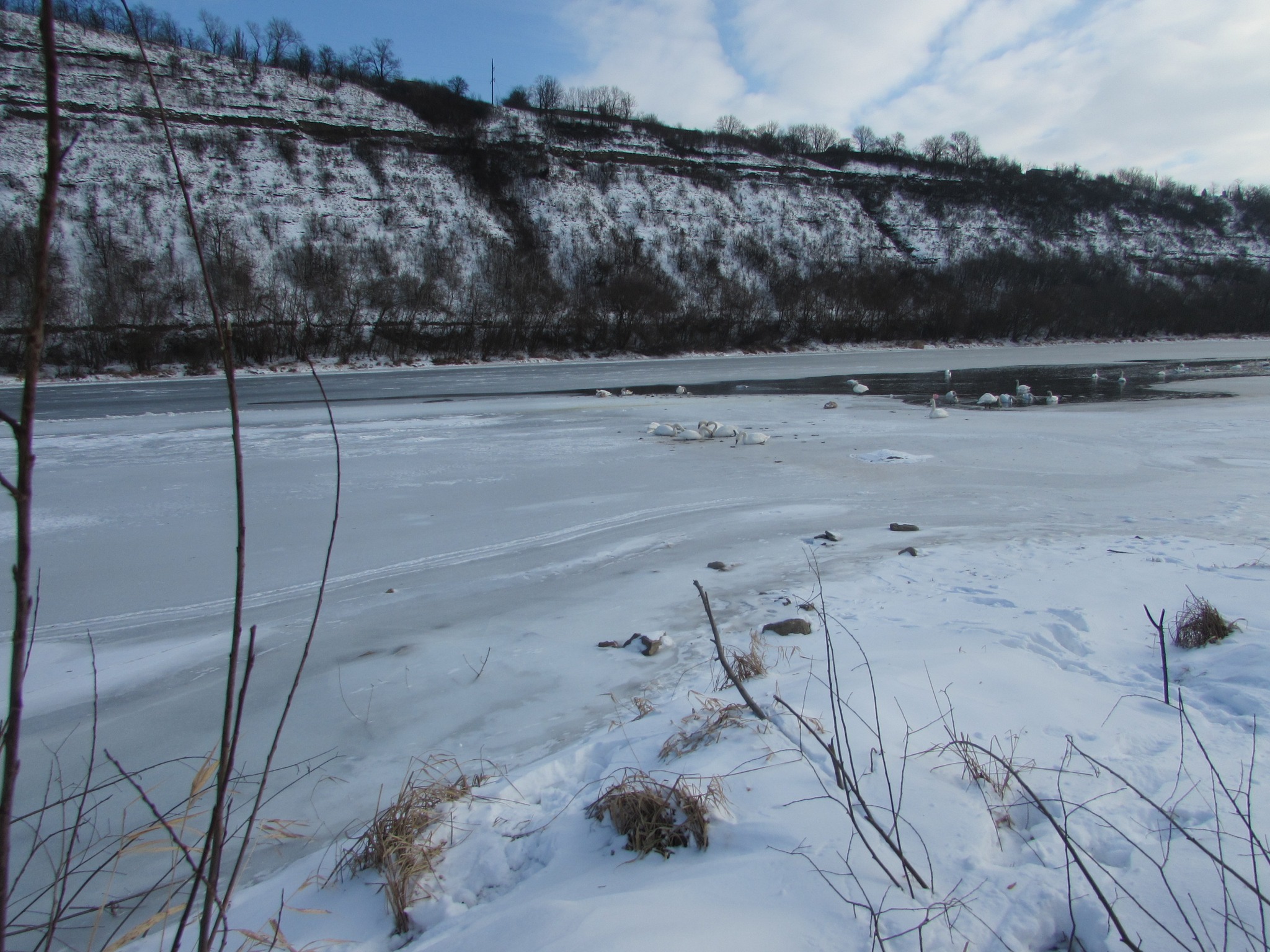 “Дністер замерз майже повністю. Залишились проталини. Одна із них відразу за водокачкою. Там зібралось близько 50 лебедів. Серед них є дикі, які достають дна і шукають їжу, але й є свійські, тобто ті що прилетіли з польських парків, де привикли, що їх годують. І тут вони сидять на кризі і чекають їди. Хто може їм трохи підсипати пшениці чи кукурудзи, ще можна капусти. Ні в якому разі не давати хліба”.