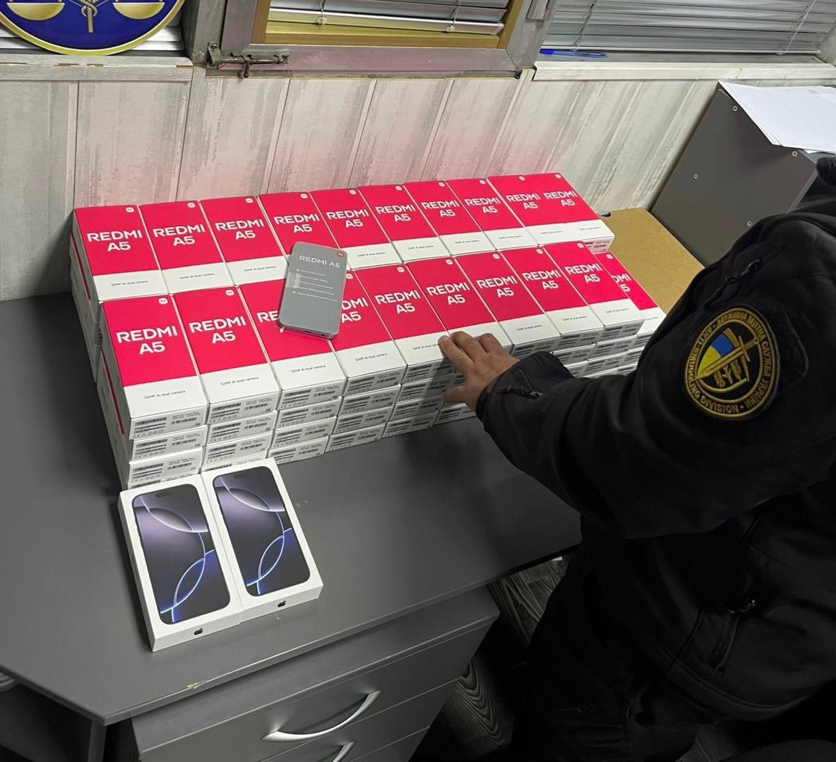 Під час огляду транспортного засобу митники виявили не задекларовані 80 мобільних телефонів Redmi A5 та два нові iPhone 16 Pro Max, що знаходились серед особистих речей.