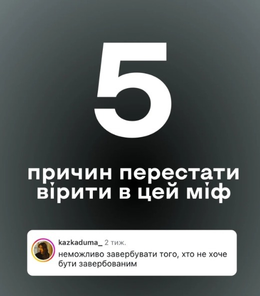 Багато українців досі вважають: «Мене точно не завербують — я ж не наївний/наївна». Саме ця впевненість, за дослідженнями проєкту dovidka.info Центру стратегічних комунікацій та інформаційної безпеки, стає найнебезпечнішою пасткою.