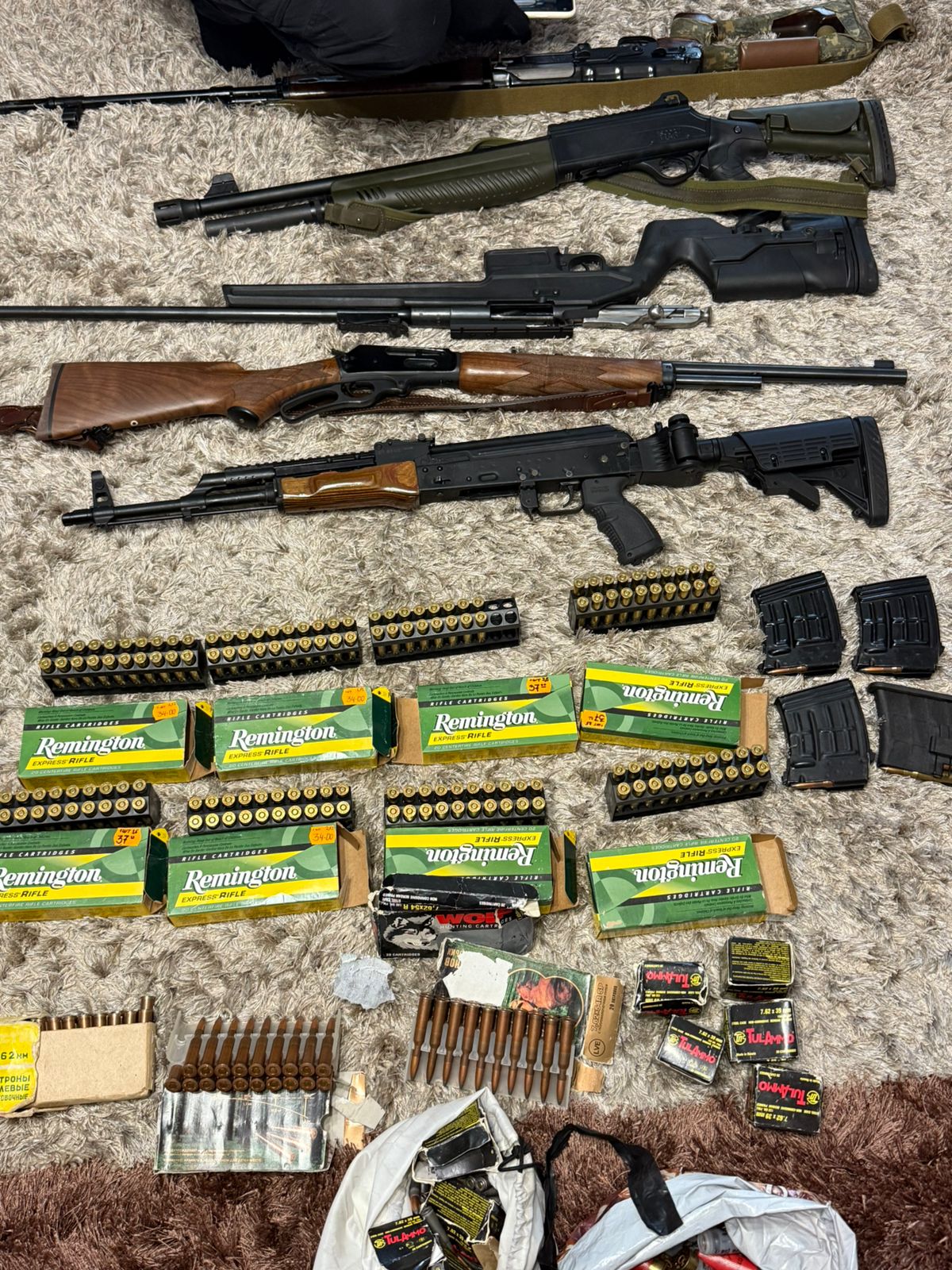 Під час обшуків, проведених спільною міжвідомчою групою прикордонників, поліції та прокуратури, вилучено значний арсенал зброї: автомат АКМС калібру 7,62 мм, снайперську гвинтівку СВД, гвинтівку Мосіна, карабін «Вінчестер», пристрій для відстрілу гумових куль «Escort Magnum» та сотні набоїв. Також вилучені мобільні телефони та автомобіль, які використовувалися у протиправній діяльності.