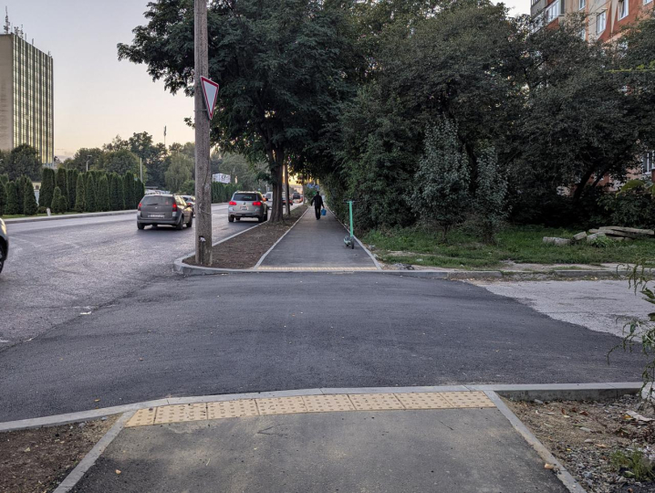 “Найцікавіше, що ми тут бачимо – безперервний тротуар: організовані кілька підйомів проїжджої частини до рівня хідника на заїздах на прибудинкові території. Також під час ремонту була перенесена зупинка з повороту – на рівну ділянку вулиці. Якщо раніше її платформа мала висоту 5 см, то наразі – 20 см. З протилежного боку також організована зупинка, якої до ремонту фізично не існувало. Окрім того, облаштований острівець безпеки”, – пише автор телеграм-каналу.